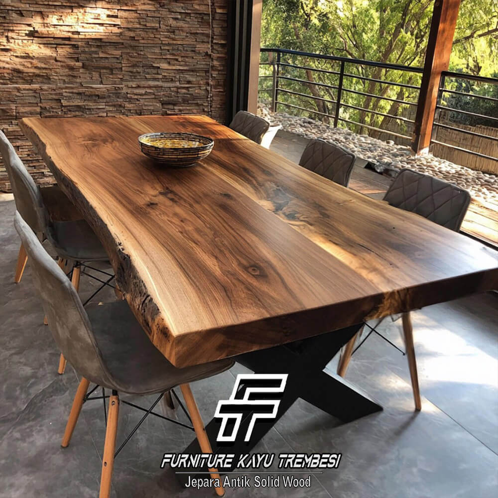 Meja Solid Kayu Trembesi Industrialis Design Live Edge